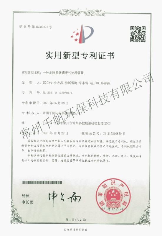 常州千帆環??萍加邢薰究偛课挥诔V菘平坛?,成立于2013年3月,是以技術研發和專業設計為先導、工程建設為主打的新型環保產業公司;環保工程設計資質、總承包資質、安全生產許可證等資質齊全。公司2017年被評定為國家高新技術企業,也是上海股權交易中心掛牌企業(企業代碼203109),公司在環保領域技術力量雄厚。公司下設常州千帆環境工程設計院有限公司,并和常州大學共建一座環境工程實驗室,和中國科學院成都化學研究所、南京理工大學、常州大學、江南大學等高校保持長期的產學研合作。經過6年的發展,公司在常州及周邊地區完成了近500家“三廢”處理工程,在廢物治理領域具備了成熟的技術條件、積累了豐富的工程經驗。